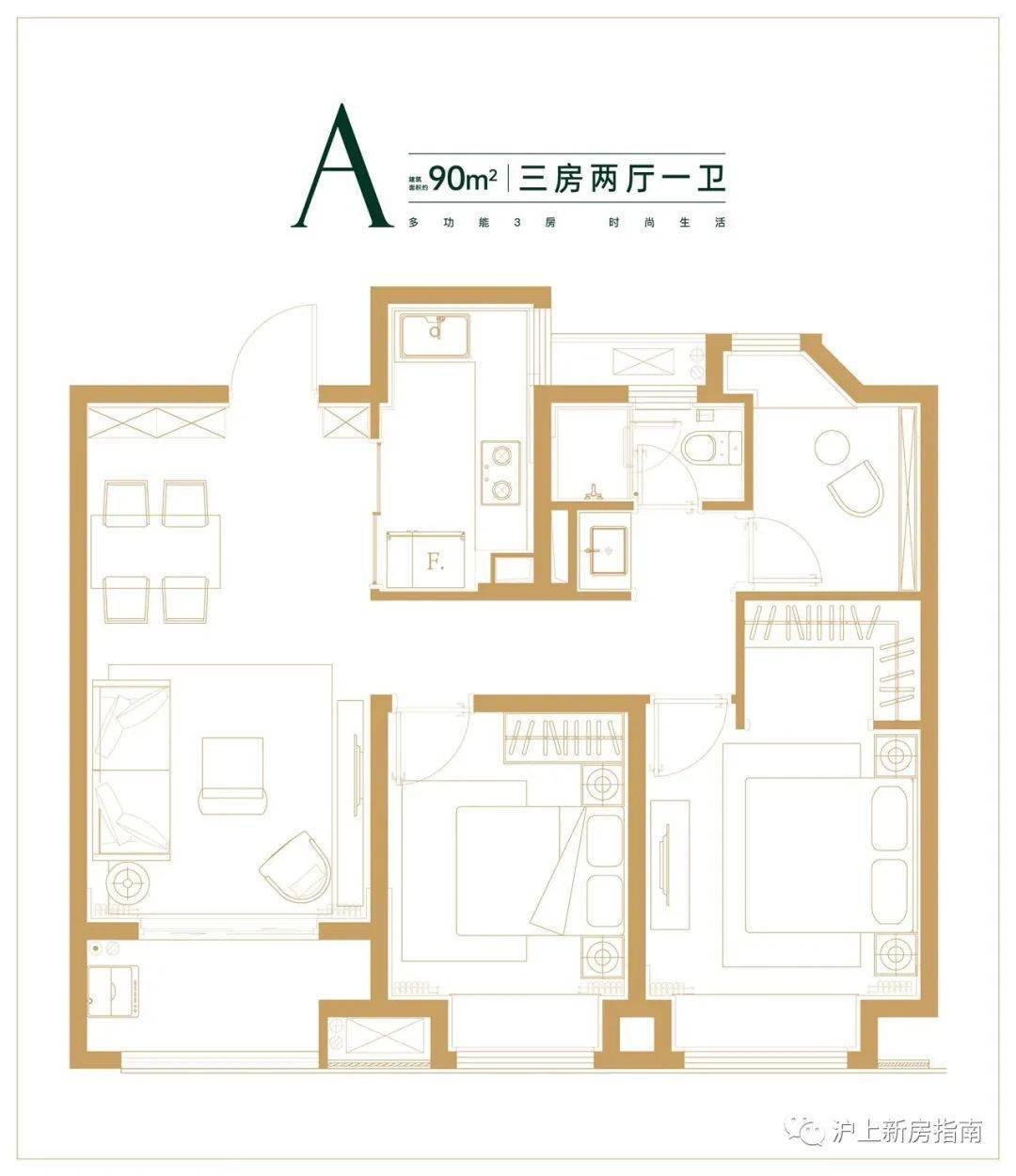 建面约90㎡三房两厅一卫