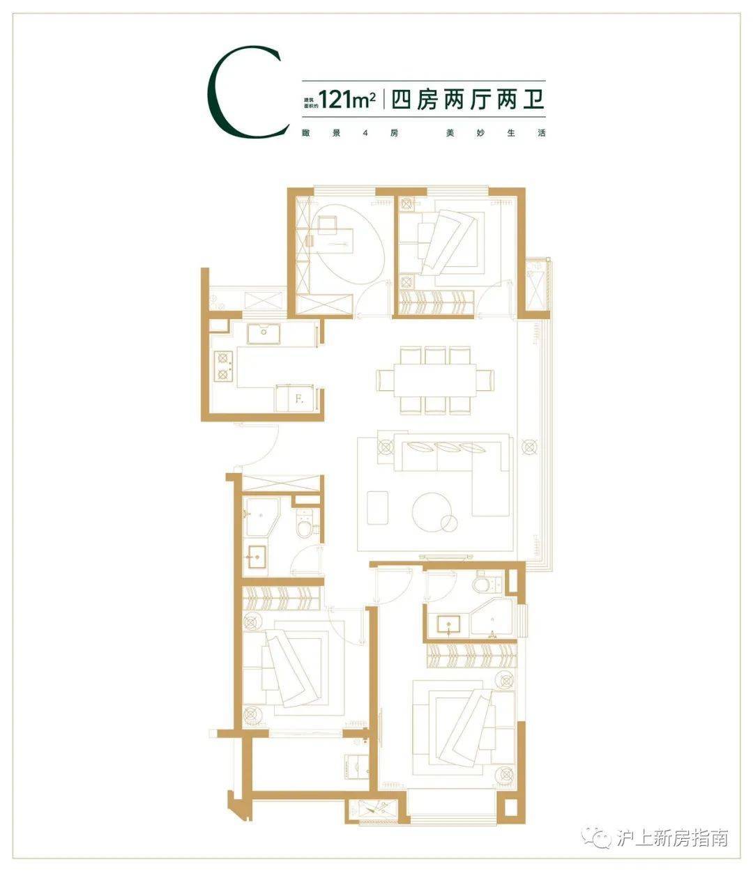 建面约121㎡四房两厅两卫