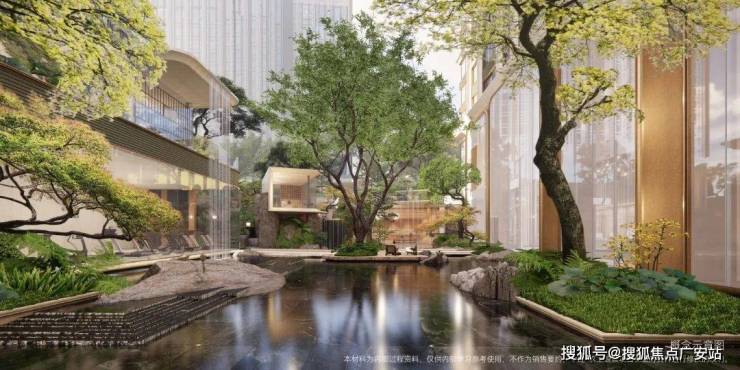 中建玖上琅宸以豫园为灵感,建设一了座当代山水隐园。在社区内部,遵循豫园山脉、水脉,以现代化手法表达,形成立体的山水园林景观,包括立体的山林、引水入园、庭荫树影。