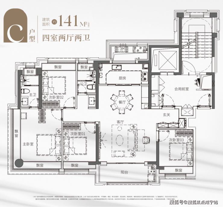 全屋足足四个飘窗设计,带来更多的采光和更好的通风,让你无需羡慕老洋房的采光。