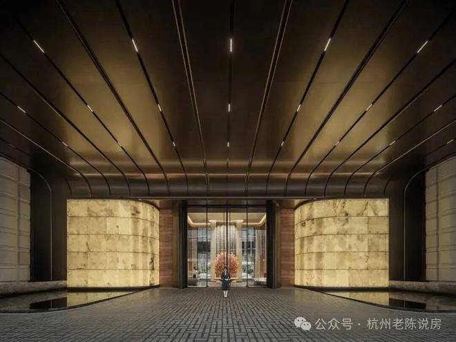 保利·天奕以“玉琮之门”讲述归家礼遇,在城市与社区的接驳地带,以一道“会呼吸的烟火幕墙”重新定义了上盖型物业的界面。主入口以杭州博物馆镇馆之宝“玉琮”为设计原型,将其转译为序列化的柱式与石台。