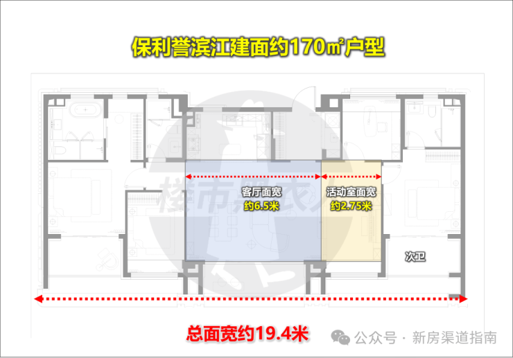 南向总面宽近20米,客厅与活动室合并开间约9.25米,营造出近乎大平层的阔境气场。