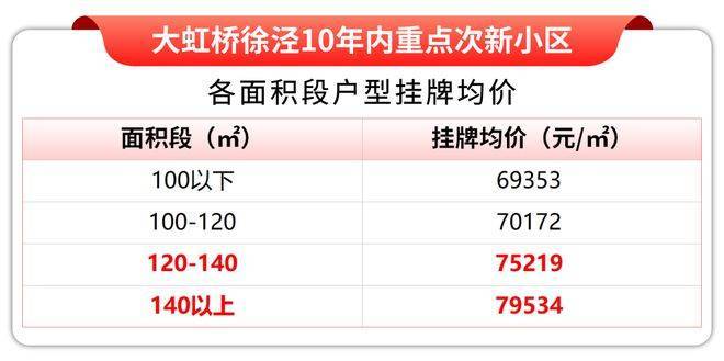 据链家网最新挂牌数据显示,目前徐泾10年内次新重点小区100㎡以下户型挂牌均价已经跌破7万/㎡。但140㎡以上的大户型却仍然有近8万/㎡的挂牌均价,溢价小户型近15%!