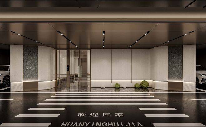 住宅的地下车库以“光影、质感”为设计理念,将其打造成一个充满艺术气息和自然韵味的空间。