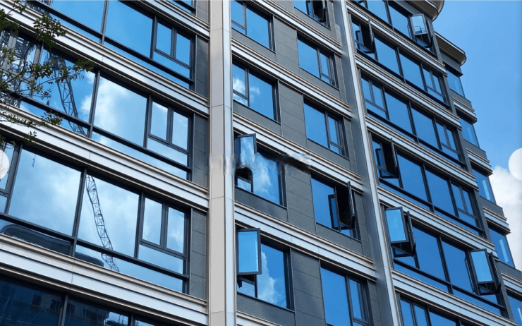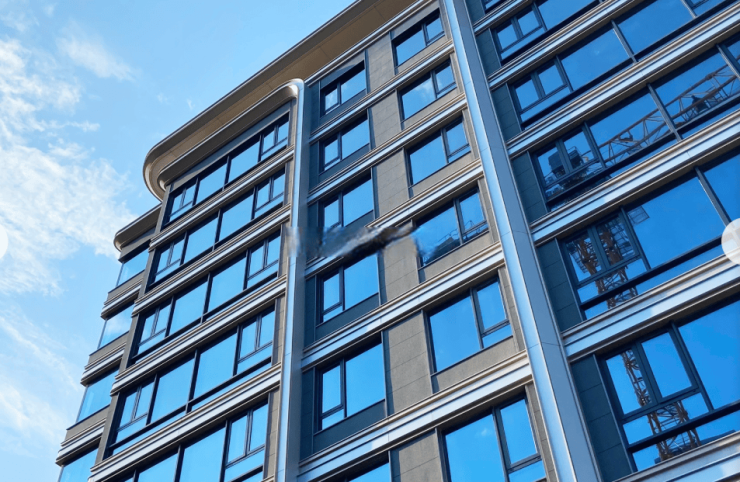 以横向线条为主的立面设计,大面积玻璃相映于尺度阳台,为居者带来更通透、舒适的居住体验,更宽阔的延伸感,而浅灰蓝色真石漆相融的高级玻璃幕墙,阐释柔美的建筑光影,整体呈现出格调典雅、稳重、更具价值感的矜贵气质,契合当代骄子的内心所需。