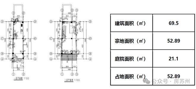 建筑面积69.5㎡,一层净高3.13m;二层净高4.79m,2.88m。