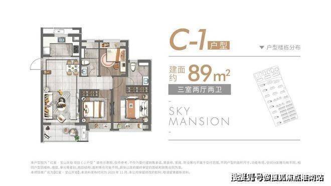 除了建面约89㎡的洋房,建面约83~89㎡高层户型也各有所长,均是三房设计,无论是从结构布局,还是空间利用皆相得益彰,承载一家人的美好生活。高层户型如下: