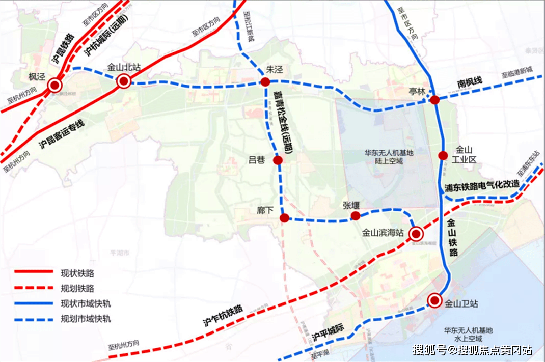 并且,随着沪乍杭铁路、沪平城际铁路(规划)、南枫线(规划)等铁路的建成,未来的金山将成为上海连接长三角地区的重要交通节点,区位优势突出。