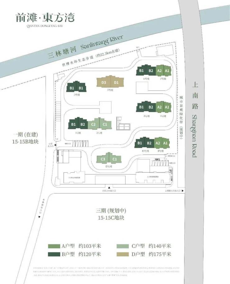 前滩·東方湾位于三林板块腹地,周边三林滨江、筠溪小镇、新杨思都属于浦东金色中环带上的重要组成部分。