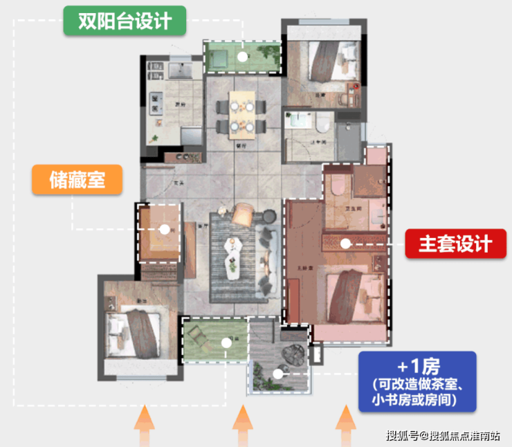 一般在首层安排起居室、厨房、餐厅、卫生间,最好有一间卧室,二层安排卧室、书房和卫生间等。