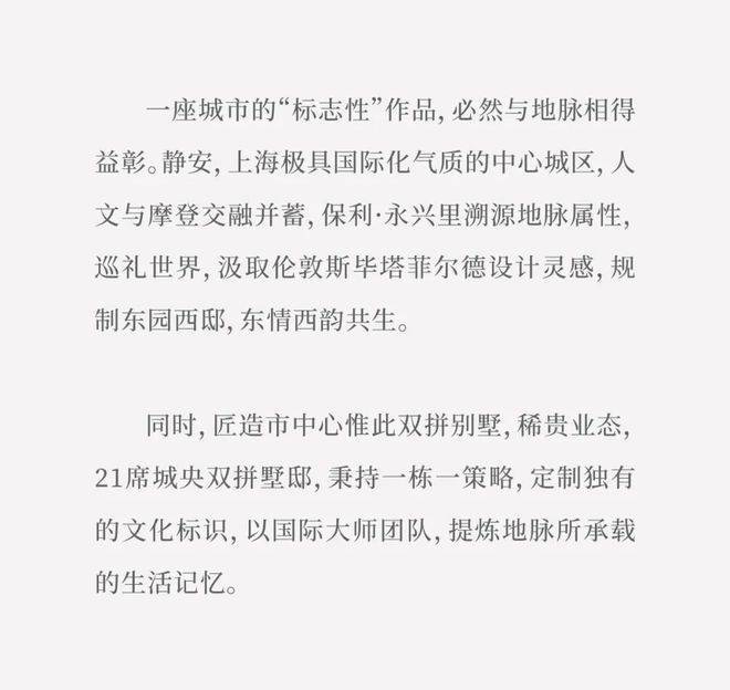上海风貌别墅供应主要集中黄浦、静安、杨浦和虹口四个行政区,保利·永兴里建面约210㎡城央双拼墅邸,18万/㎡城央恒产,成就时代臻稀品