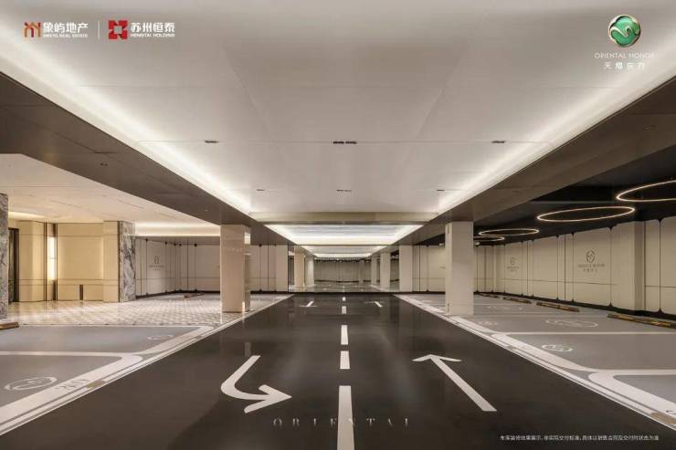 车位配比更是做到约1:2.2,每户家庭都能拥有2个车位,极大满足高改家庭对于一家多车的普遍需求,车库的行车道采用水磨石设计,兼具耐磨与防滑特性,车位上采用环氧地坪设计,色彩纯粹且易于清洁。
