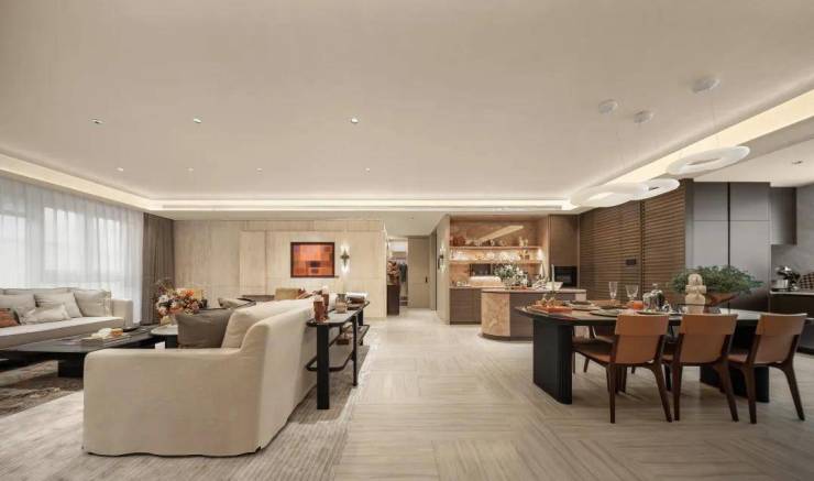 约16.9m南向面宽+约6.75m横厅+近80㎡中央生活场,如果说会所是小区的门面,那客厅就是房子的排面担当,既适配商务宴请、圈层社交的高阶需求,又兼顾日常居住的从容与奢适!