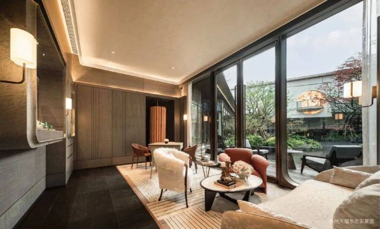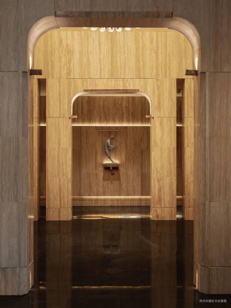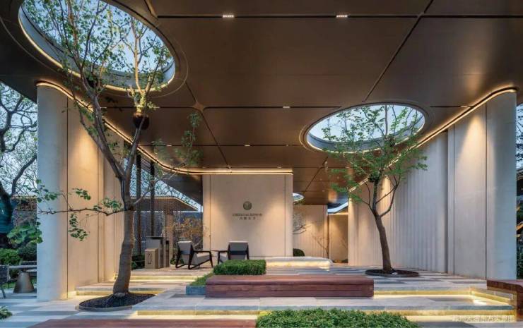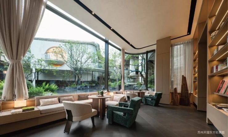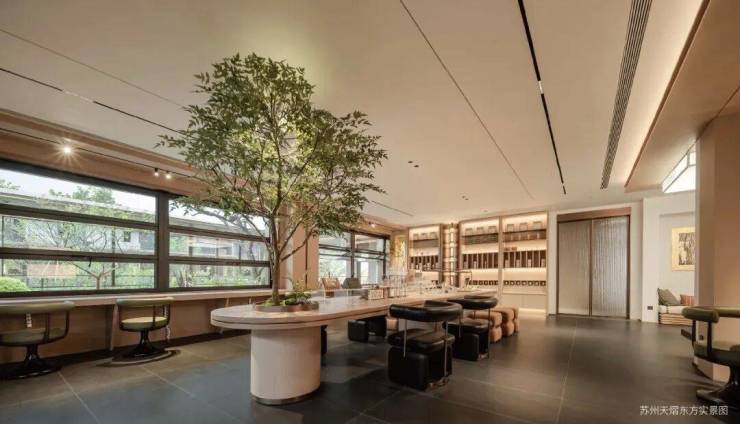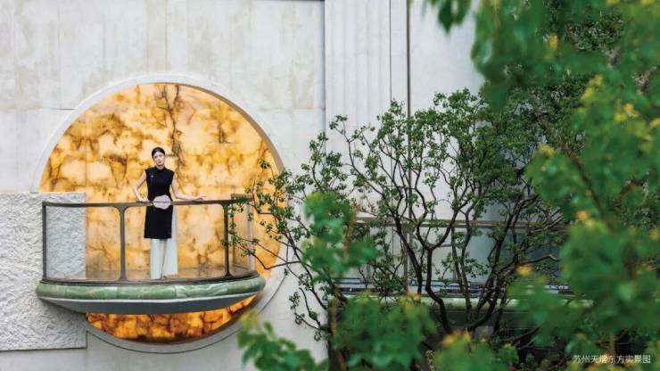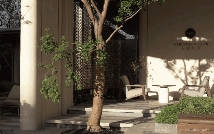 于会客平台,将项目超级符号通过镂空雕刻形成花纹格栅。阳光透过时,地面浮现摇曳花影,营造"疏影横斜"的苏式雅韵。