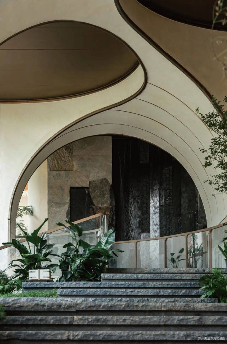 撷取苏州玉盘的温润形制,以当代水景工艺演绎"大珠小珠落玉盘"的诗境。时而碧波微澜的静水、时而清溪潺潺的跌水、或是玉珠欢跃的跳泉……