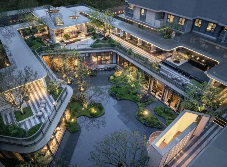 立体园林以“玉湖承韵”为主题,打造步移景异的景观层次。以九曲玉带桥、风雨连廊串联园林,植被搭配了珍贵全冠移植元宝枫、红果冬青、文冠果等,打造姑苏山水意境与现代功能的共生空间,细节处融入山石、飞瀑、湿地、草甸、穹顶等东方韵味元素。