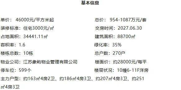 由象屿&恒泰联袂打造的纯洋房住区,坐落于苏州工业园区核心区位(星湖街西/创苑路/南八达街东),以1.6低容积率与≥35%绿地率营造静谧居住环境。项目规划10栋6-11层纯粹洋房,精装交付四大迭代户型(建面约162/186/207/253㎡),由象屿物业提供品质服务。