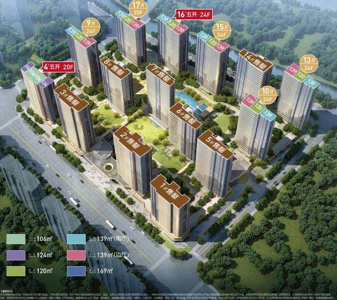 户型以106㎡三房三开间朝南、124㎡四房双联阳台为主,全封闭阳台提升空间利用率
