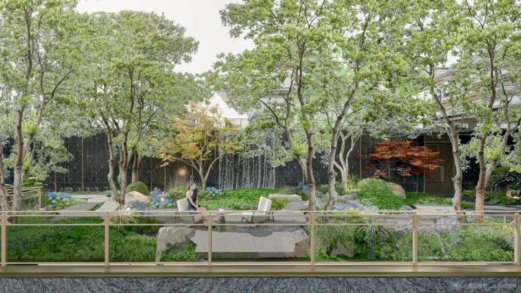 3纵中心花园:分布联排建筑组团中的3纵景观步道,打造中式园境,让归家成为一场穿越风景的旅行