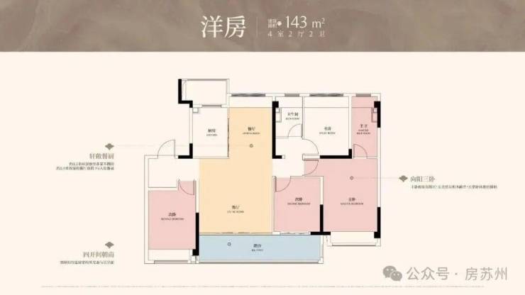 四开间朝南:双联阳台延展家的采光面与赏景面。l向阳三卧:主卧梳妆有阳光,儿童房玩积木敞亮,长辈卧休憩也暖和。