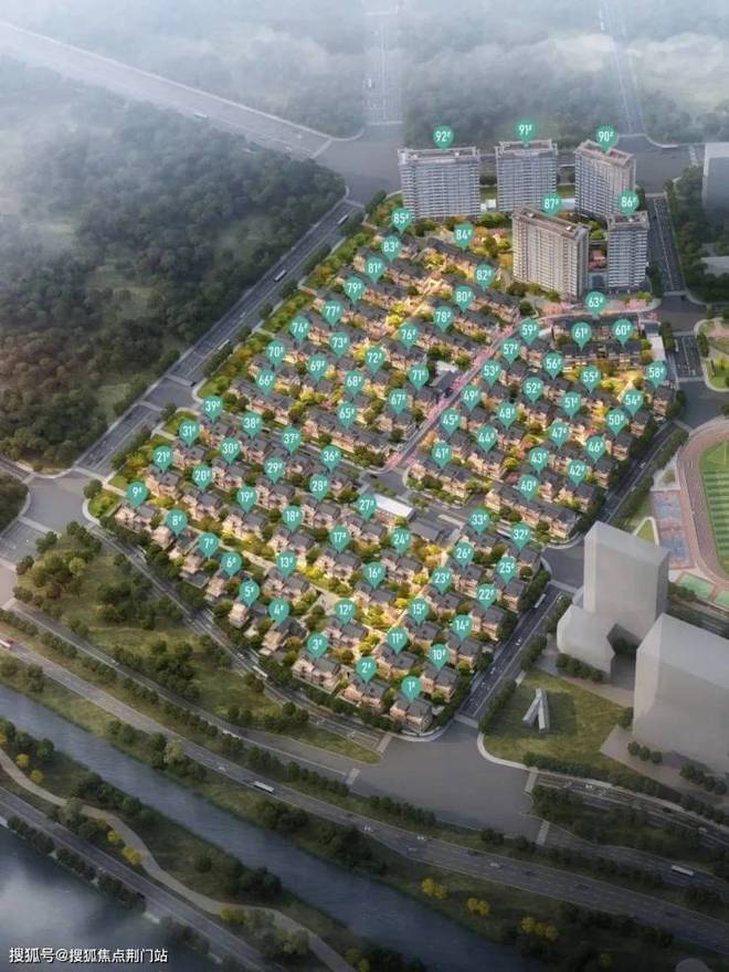 云启钱湾80幢排屋和5幢高层住宅,其中,排屋建面约222-492㎡,高层建面约99-144㎡,容积率仅1.01。采用“高层围绕中心景观”围合式排列的方式,保障每栋楼都能共享园区美景,并采用中式挑檐设计,建筑精致典雅,令人耳目一新。高层区的景观设计也是别出心裁,不仅预留了大面积的绿化空间,还设置有一座下沉式庭院、一个中心庭院,进一步提升了居住品质。