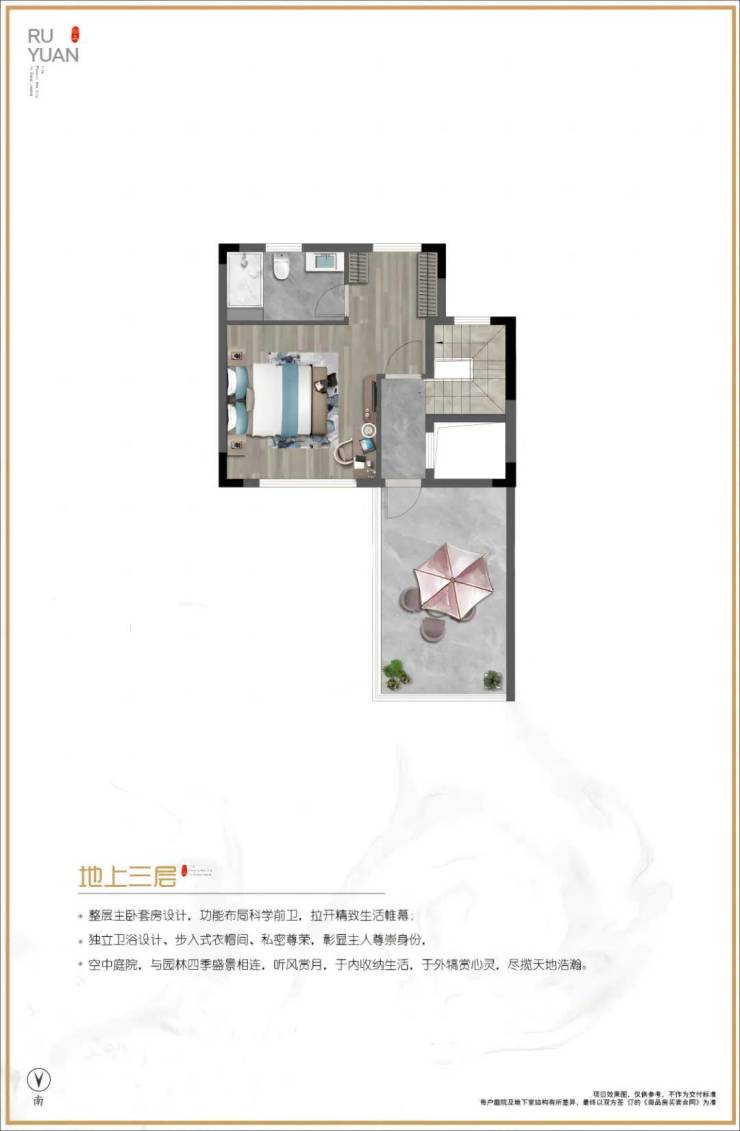 三楼整层主卧套房设计,带空中庭院。当夏天的时候约几个朋友在庭院上喝喝茶,或者约几个朋友吃吃烧烤,喝喝啤酒,让您真正感受到人生的惬意和人与自然共呼吸的美好生活。