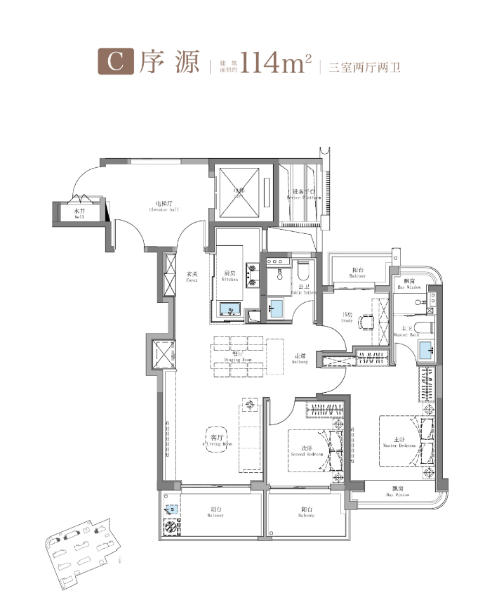 再来看建面约114㎡三房,百平三房的升级款,让人拥有“这是120㎡”的错觉!