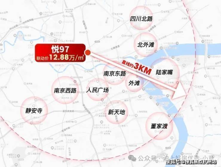 · 直线距离人民广场约3.5公里的曹家渡项目售价17万/㎡左右;