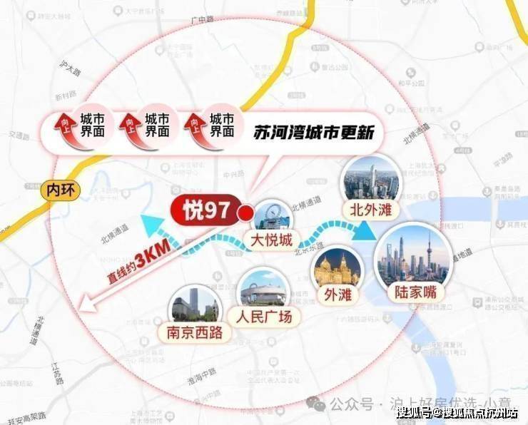 回过来看 悦97,它是真正的苏河湾核心位置,真正揽尽了苏河湾的精华!