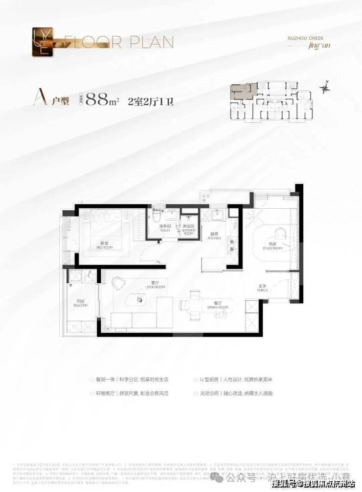 建筑面积约88㎡2房A户型:千万级预算买进苏河湾核心位置的绝版机遇,地段控闭眼冲!
