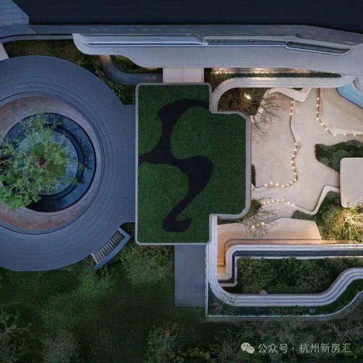 因项目整体抬高,从下沉庭院到架空层“空中花园”的落差极大,形成独特的峡谷地貌,杭序府的设计团队汲取九溪烟树为造园灵感,打造一个立体多维的城市溪谷交互园林;因项目毗邻江岸,杭序府的外立面以“站立的江潮”为灵感,