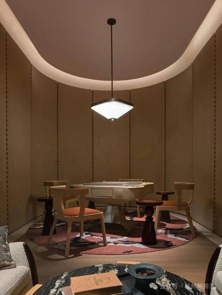 陶砚176㎡户型:取陶砚之自然璞实感,雕琢白冰玉的背景墙,客厅吊顶还原砚台造型,室内饰以瘦金体笔划装饰线条。从太太幸福厨房系统、天使之眼安全监控平台,到宠物清洁站,杭序府用洞察赋智慧以温度,让科技完成从工具到人性的进化。