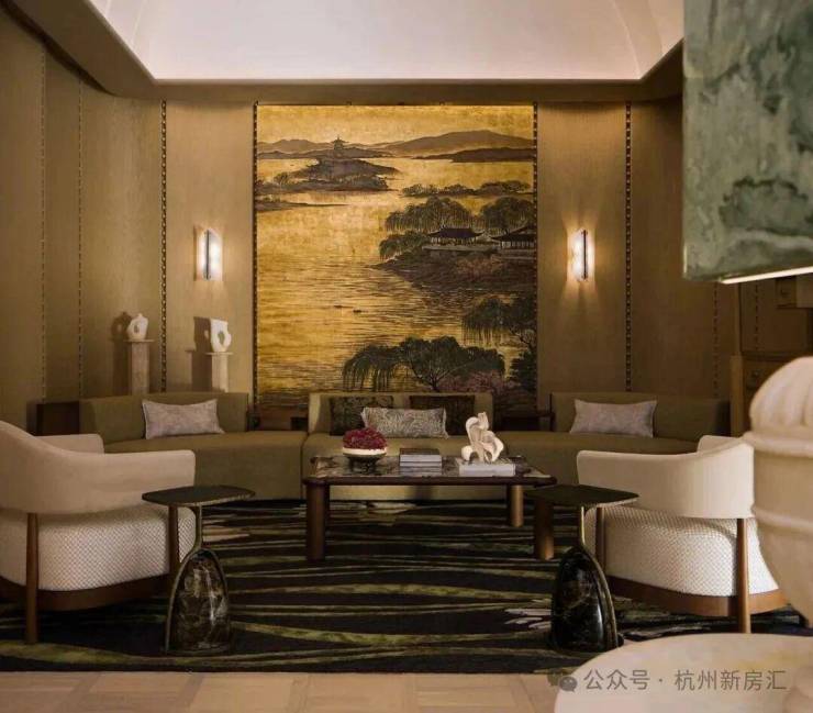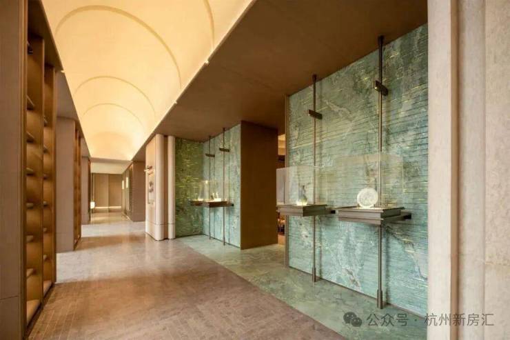 地上二层是约5米高的架空层,作为杭州首个与西泠印社杭州书画社深度合作住宅项目,杭序府楼幢架空层内打造西泠文房艺术空间,拥有金石文化定制主题会所服务系统,提供独具杭州文脉特色的定制化社区服务。