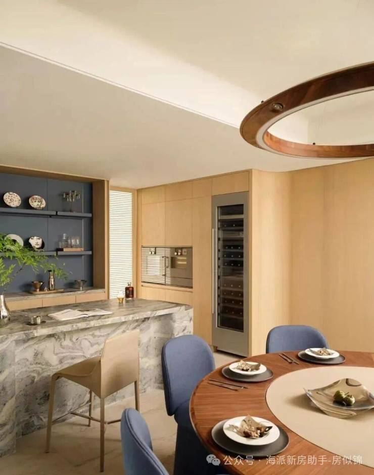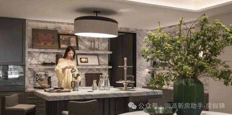 万科中興傲舍凝聚72种高端豪宅都难得一见的奢材,如皇家白奢石、Prada绿皮革面奢石、砖纹定制铝板等等,每一处细节都透露出精致与考究。