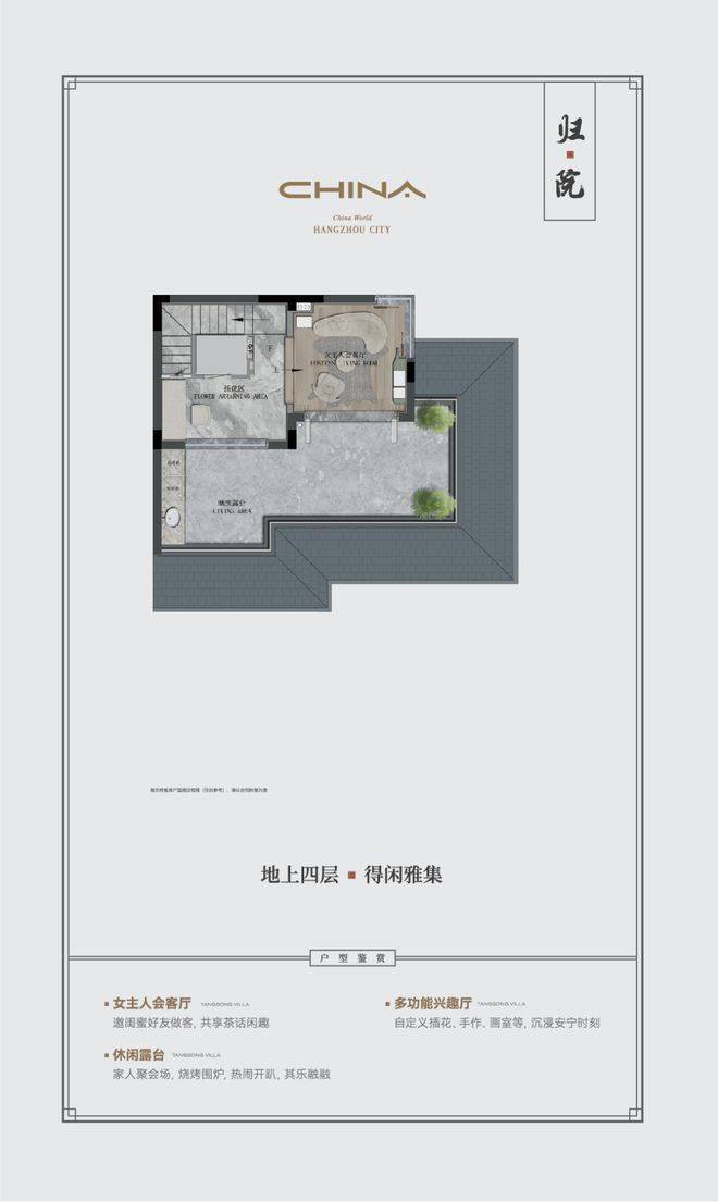 塘颂的样板房,可以说满足了人们对房子的所有向往:院子、露台、阳光、奢阔,装得下春花秋月,也装得下天伦之乐。马云御用设计师——朱晓鸣先生,将光影变换、中式传统、人文气息充分结合起来,达到自然与人文和谐统一。