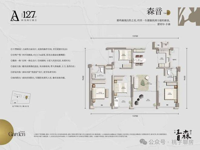 整盘仅114套,含110套约126-139㎡森系华宅和4套约300㎡排屋,容积率2.0,绿化率30%。