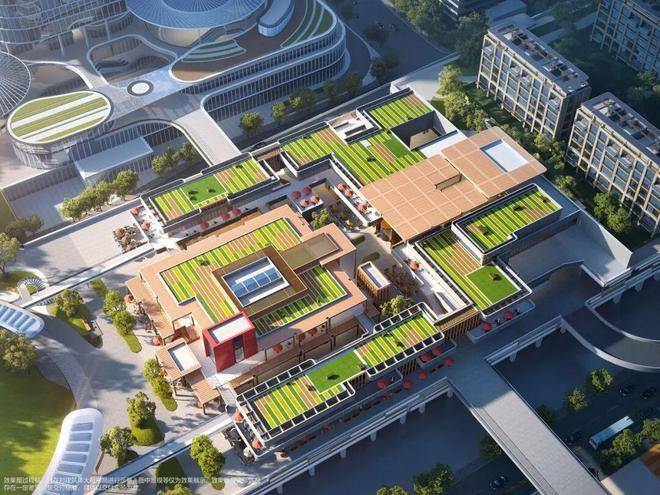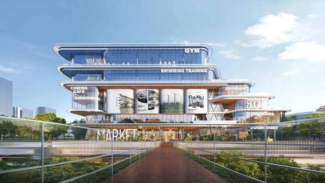 还有九年一贯制的学校及层层退台设计的邻里中心。前者将由保俶塔申花实验学校领办(期房不承诺学区)。后者则包含了泳池、农贸市场、文化活动中心、剧场、健身中心、社区服务中心等功能。