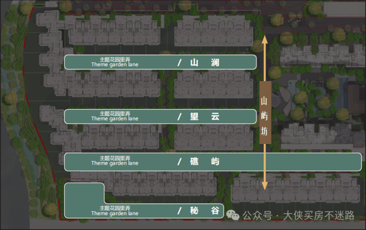 三进四大主题墅级归家场景。以山澜、望云、礁屿、秘谷四大主题景观统一打造雅奢度假风格,让业主尊享星级归家体验。