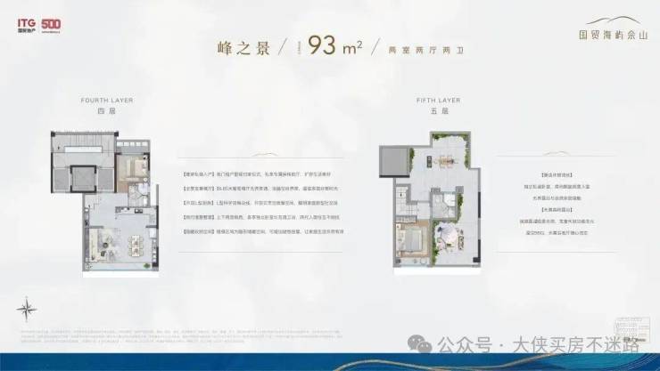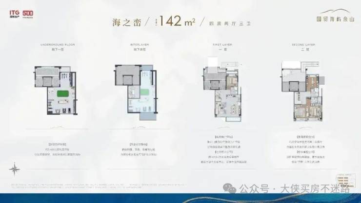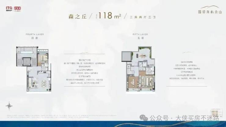 从为数不多的户型资料中,我们发现国贸海屿佘山通过对采光、视野等产品关键要素的升级,打破自然与建筑的边界,通过对话自然、交互自然、拥抱自然,为城市提供了舒适度跃升的墅居作品,大幅提升观景视野;
