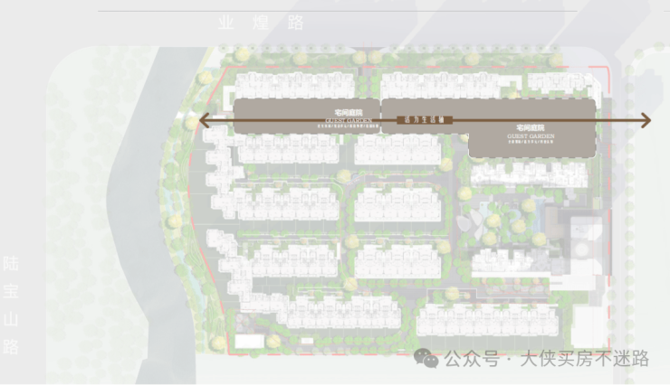 双轴:礼仪归家轴&精致生活轴!礼仪归家轴包含了三进归家门仪,包含从小区大门,到入园门,到入户门,精致生活轴则串联起高层组团,打造了精致生活庭院叠加度假花园。移步异景。