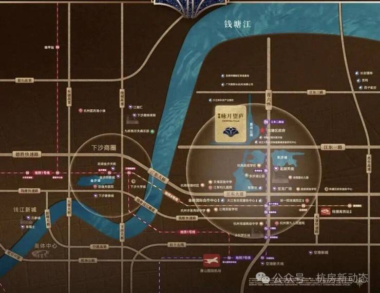 轨交网络:依托双地铁(7号线、8号线),有效接驳奥体、钱江新城;2站地铁即达钱塘高铁站(在建),联动长三角城市群。