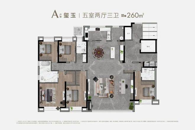 A户型 玺玉 丨 五室两厅三卫 建筑面积约260m²