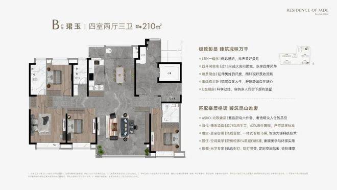 B户型 珺玉丨四室两厅三卫 建筑面积约210m²