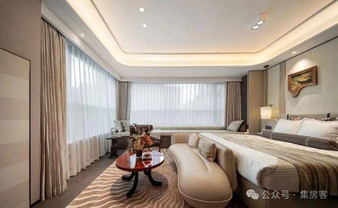 同时,不仅餐客厅有着约7米的落地门窗,书房与主卧还都坐拥270°采光面,任由晨光与暮色在家中流转,也撑起了豪门大宅的自信气场。