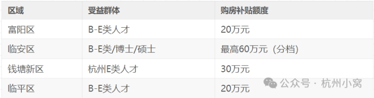 E类人才:部分区县(如余杭区)额外提供最高20万元补贴