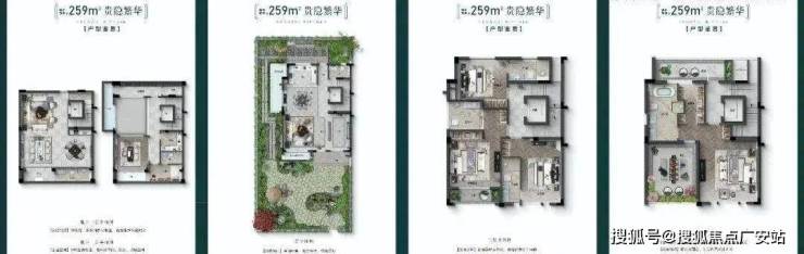合院采用地上三层+地下两层布局,边套带三面花园(100-150㎡),主卧套房配备星空双露台35