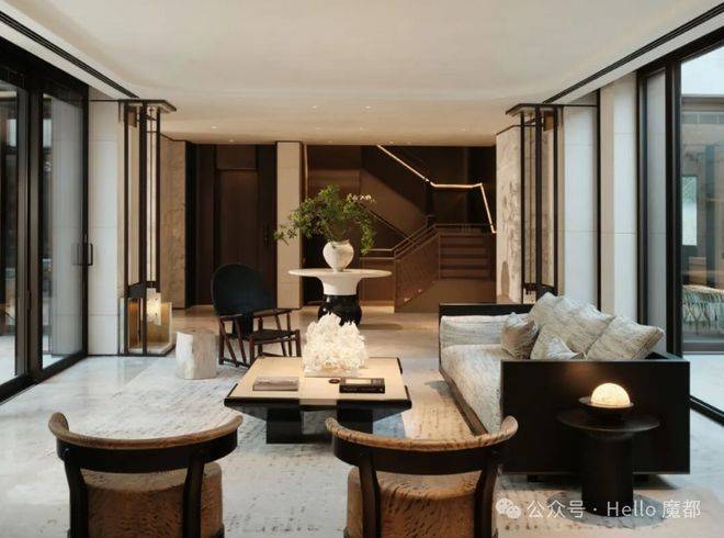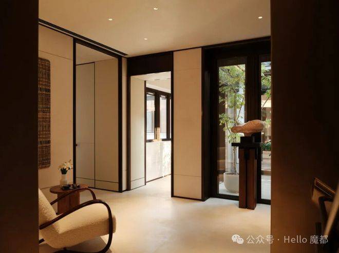 契合中国传统院落居住哲学理念,以“外紧内松”空间设计手法,对风貌别墅空间尺度进行当代拓新,让空间服务于生活。外紧-通过外部百年巷道肌理活化、建筑错落排布景筑交融,打造美而精的体验;内松-宅院内以多重庭院、立体花园、大落地窗等实现室内尺度拓新,给家人更多停留空间、打造建筑会呼吸的松弛感。