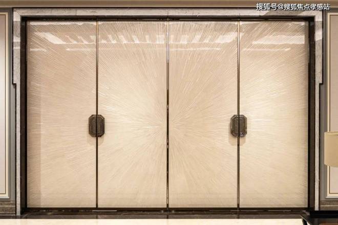 ART DECO风格的黑白拼花大理石地面与大面积镜面墙设计,延展了入户空间的视觉深度。如璀璨星环水晶环形吊灯,增添了归家的仪式感。奢华的玉石背景墙与法式经典家具相映生辉,在静谧与华美之间,彰显翡梵空间的非凡气度。餐厅与西厨之间,八扇手工定制的电动旋转立门,宛如天工造物般的巧思令人惊艳。每一扇门均镶嵌意大利SICIS内含铂金的奢华马赛克,天然贝壳面板在灯光下折射出璀璨光芒。门扇的开合间,实现了空间的灵动转换,私密与开放的完美平衡,为社交与生活增添无限乐趣。每一处细节都经过大师级的匠心打磨,呈现出一场视觉与感官的极致盛宴