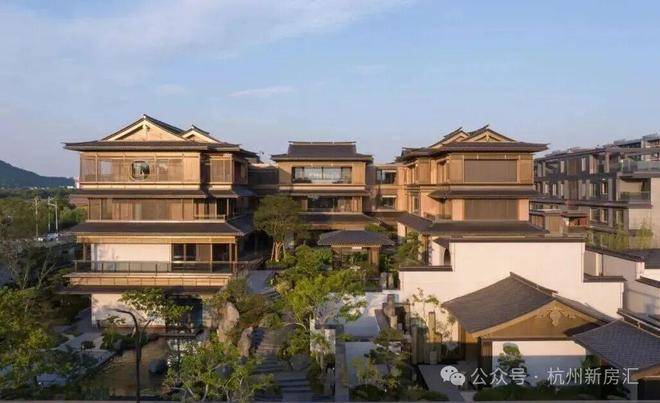 建筑立面:古今交融的诗意表达:外立面以香槟金铝板为基调,搭配蓝眼睛石材与玻璃幕墙,融合传统歇山重檐、纳福悬鱼等元素,既保留宋式建筑的对称美学,又赋予现代建筑的轻盈通透。合院组团采用三面庭院设计,L型景观面与环绕式檐廊,将超山梅影、丁山湖光引入每一扇窗景!