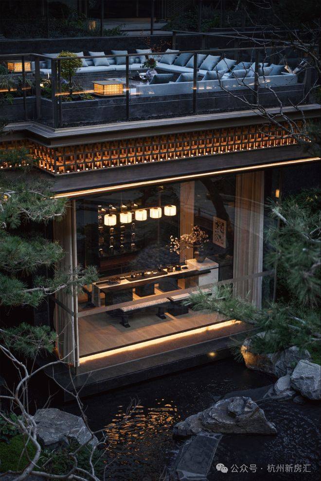 细看,还有歇山重檐、纳福悬鱼、黛墨青瓦、瘦金披檐等元素的点缀,这样的立面设计,将东方建筑之气韵、有形之光影,完美融合。如此超凡的建筑美学,在熙熙攘攘、繁华的杭州城,是独一份的。